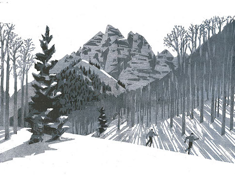 Skiing Maroon Creek Road, 2025, 14 x 21"