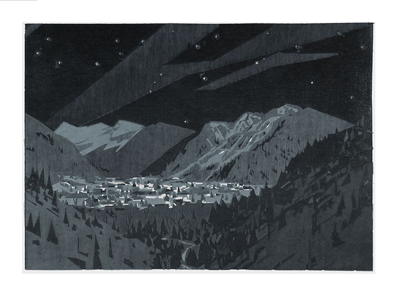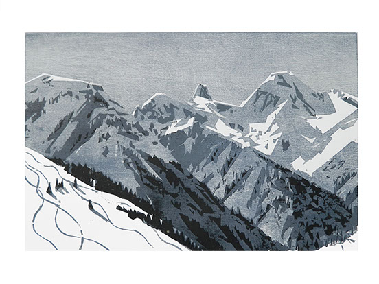 printed on Japanese washi paper with oil-based inks, run through a hand press, and then signed and numbered in limited editions.